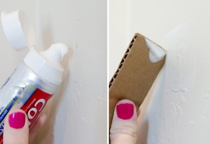 All you need to do is use some toothpaste to fill in those holes. Make sure the toothpaste is white, so it matches the color of your white walls, or it won’t blend in. You can also do this before you move out of a place to help you get your security deposit back.