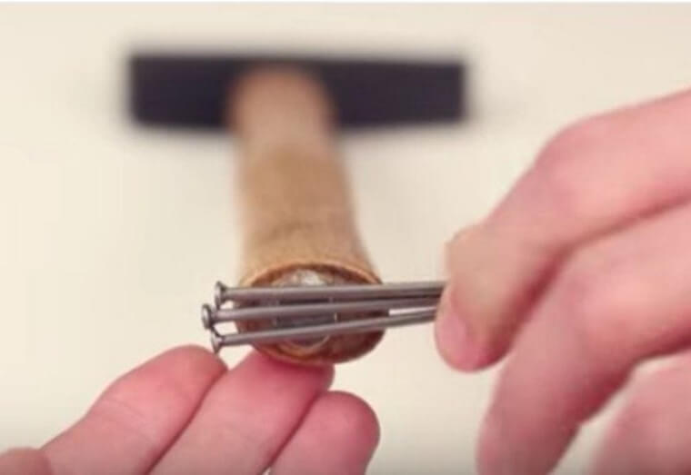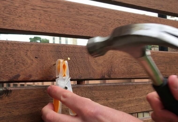 For this hack, you can use bobby pins, clothespins, or similar items. For instance, if you use a clothespin, you can hold the nail between the pin and start hammering. This will protect your fingers and ensure you aren’t injured during the nailing and hammering process.