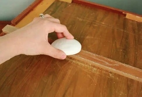 You can use a bar of soap or liquid soap, as both will work well on the drawers. Rub the soap along the rails of the troublesome wooden drawers for a few minutes, and you’ll see results quickly. If the noise returns, you can simply repeat the process.