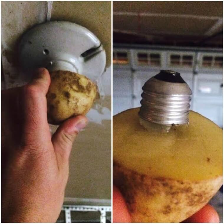 Take a potato, slice it in half, and press the soft side into the broken bulb. To remove the broken piece, turn the potato counter-clockwise, and it will come out quickly. Indeed, potatoes are useful for more than just eating.