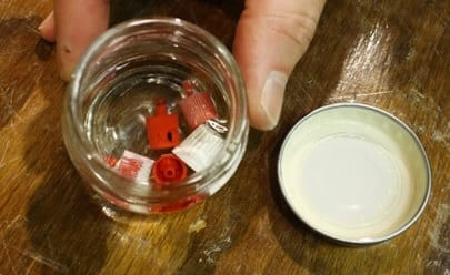 Use clear nail polish to coat the bottom of these metal containers. This will prevent rust from forming on the containers, ensuring there are no rust marks on other surfaces.