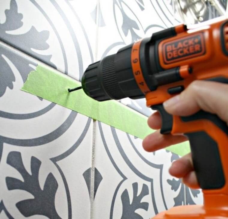 To prevent slipping while drilling, you’ll need some tape. Start by applying masking tape over the tile, then drill through it. This method helps to keep the drill steady and prevents it from slipping out of your hands during the process.