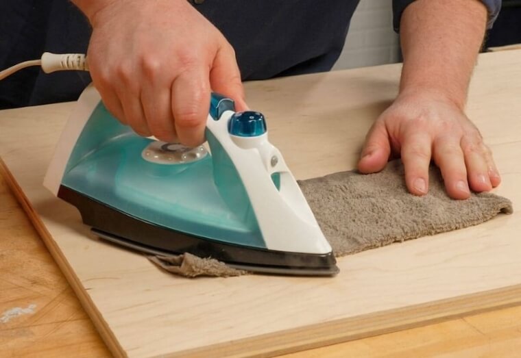 Begin by taking a washcloth, soaking it in water, and wringing it out to make it moderately damp. Then, lay the washcloth over the dent. The water will absorb into the wood, which is completely normal, so there’s no need for concern. Make sure your iron is prepped and heated to the highest setting before you apply the damp washcloth. Start by moving the iron in small circles on the washcloth, then press it down until all the water has evaporated from the washcloth. Repeat the entire process until the dent in the wood has fully expanded to its original position.