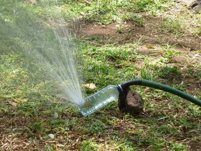 Take a plastic bottle; the larger, the better, and ensure it’s completely clean. Rinse out any liquids by running tap water through it. Then, take a tool with a sharp point, like a compass or screwdriver, and punch about 12 to 14 holes in the bottom of the bottle. Next, connect the mouth of the bottle to your hose and use electrical tape to secure it. Once you turn on the water, the bottle will fill up, and the water pressure will cause the holes to function like a sprinkler.