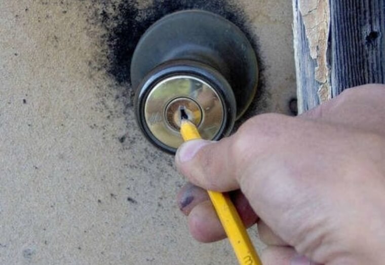 A jammed lock typically needs lubrication for the key to function again. Nonetheless, it should not be done with any liquid but with graphite. Although finding graphite powder can be difficult when you’re in a pinch, you can conveniently use a graphite pencil to lubricate the lock. We advise against inserting the pencil into the lock, as the tip could break and create a larger problem. Instead, rub the graphite pencil on your key, then insert the key into the lock. Repeat this several times and then unlock the jammed lock.