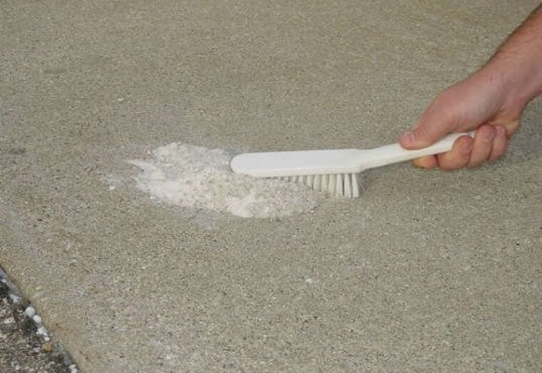 If a new oil stain has formed on your driveway, don’t delay in addressing it; grab some cat litter right away and get started. First, cover the oil stain completely with a layer of cat litter and let it rest for at least 30 minutes. If the stain is small, 30 minutes should suffice. If it’s a large stain, consider leaving the cat litter on the oil overnight. Then, sweep it up and use some detergent and a bristle brush. Begin scrubbing the detergent into the oil stain with pressure. Rinse the detergent off with water. Repeat the process if needed.